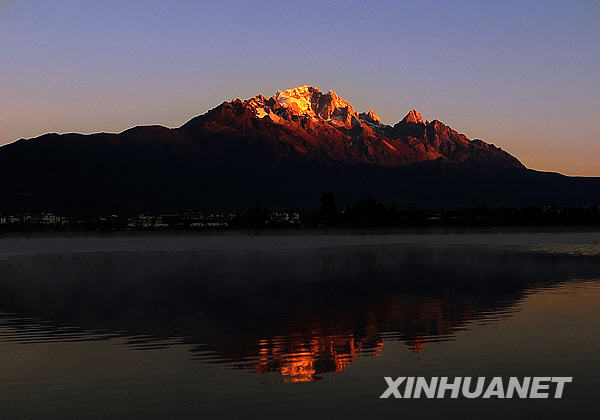 這是日出時(shí)分的玉龍雪山(11月8日攝)。云南西北部橫斷山脈中雪山林立,不僅有北半球最南、最高峰有5596米的大雪山玉龍雪山,還有最高峰6740米、至今無(wú)人能攀登上的梅里雪山,他們之間還矗立著主峰高度達(dá)5396米的哈巴雪山,以及海拔5000米以上山峰有20座的白馬雪山。這些氣勢(shì)磅礴、銀裝素裹的雪山,是清朗而明凈的高原上最動(dòng)人心魄的勝境。新華社記者鄒崢攝