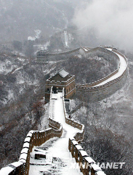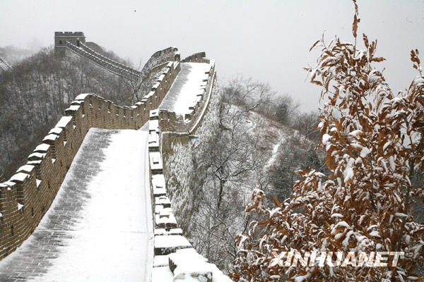 12月10日,北京迎來今年入冬后的第一場降雪,慕田峪長城銀裝素裹,景色十分壯美。新華社發(fā)(卜向東 攝)