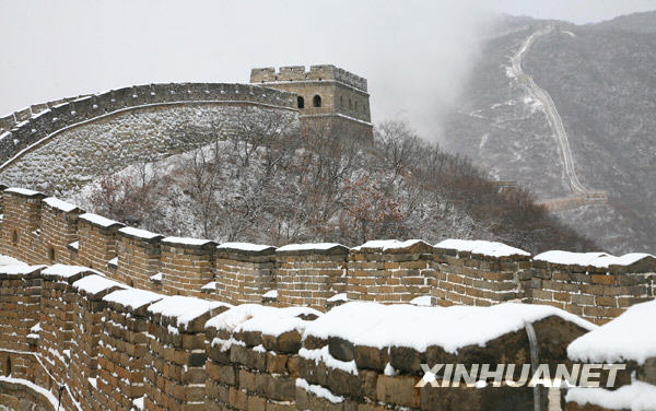 12月10日,北京迎來今年入冬后的第一場降雪,慕田峪長城銀裝素裹,景色十分壯美。 新華社發(fā)(卜向東 攝)