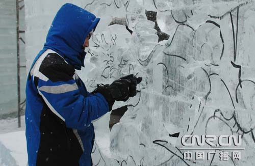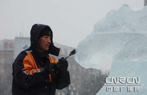 上午,記者先后來到了烏魯木齊人民廣場和烏魯木齊南湖廣場,看見部分冰雕作品已初現(xiàn)雛形。古樸的長城,莊嚴的烽火臺,新中國成立60周年的紀念臺,紀念奧運的鏤空冰墻,舞姿美麗婀娜的新疆姑娘,神奇的晶瑩迷宮,栩栩如生的飛馳駿馬,威風凜凜欲騰空而去的猛龍,還有那演奏著天籟之音的維吾爾人......引得心急的游客們在冰雕展還沒舉行,就迫不及待的拿起了手中的相機拍照留影,先睹為快。