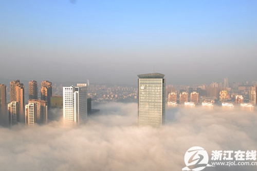 據(jù)“一土”介紹,圖中尖頂?shù)慕ㄖ䴙樾侣涑傻暮贾輳V電大樓,周圍建筑為近江家園。