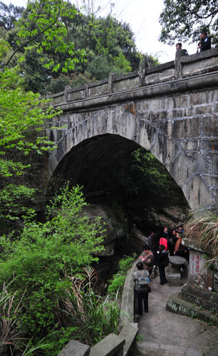 景區(qū)內主要景點有觀音橋、第六泉、蔣介石夫妻樹、棲賢寺、《墨子篇》石刻、玉淵潭等,集自然景色與人文內涵于一體。觀音橋是我國現(xiàn)有最古老的石拱橋之—,又名三峽橋或棲賢橋,建于北宋初年(公元1014年),至今有近千年歷史。它是一座石造單孔橋,長24.4米,寬4米,橋面鋪以大石,兩側砌有石欄,橋孔內圈由七行長方形石條首尾相銜,凹凸榫接,漸彎成弓形。全橋造型美觀,氣勢宏偉,被人們贊為“締構偉壯,神施鬼設,非人力所能為”,每當雨季時,谷中山瀑湍流,水聲震天,那“二十四潭爭—橋,驚泉噴薄幾時消”的奇景令觀者無不驚嘆。