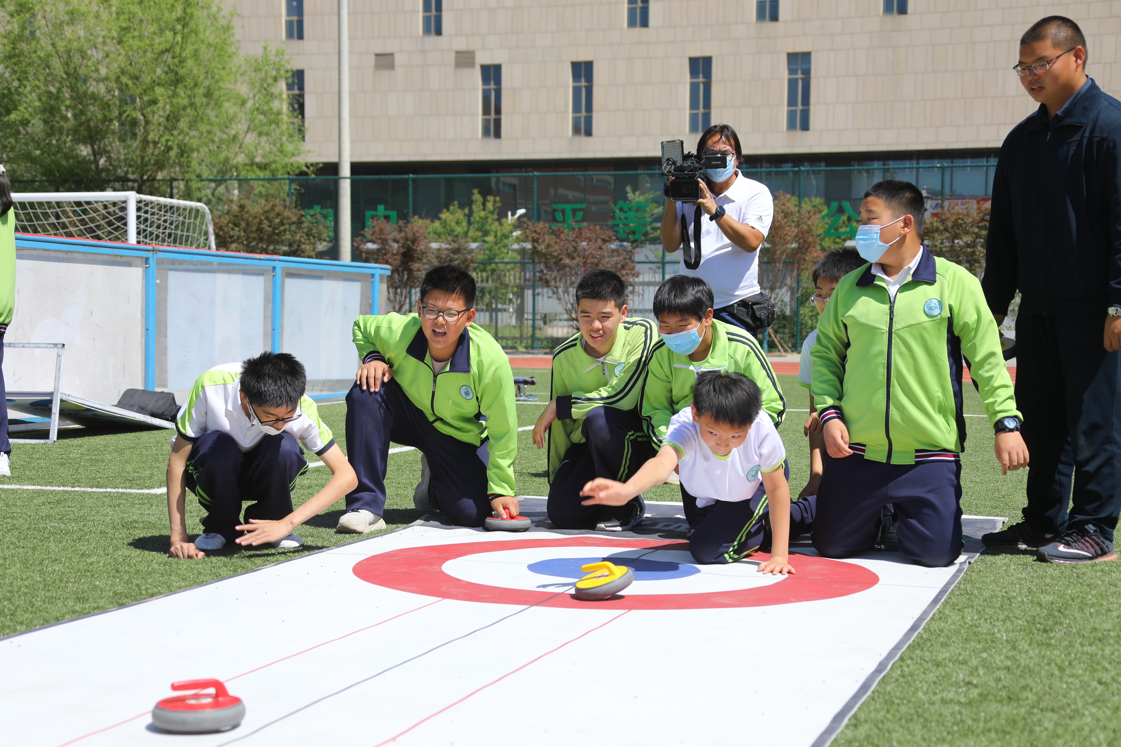 (學生體驗旱地冰壺)