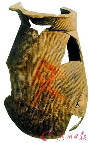 有朱書陶文的扁壺 。ㄌ账逻z址出土)