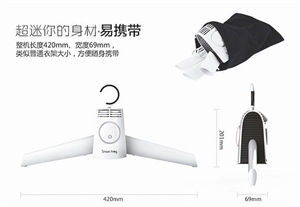 外型上,干衣機(jī)整機(jī)長420mm、寬69mm,類似于普通衣架大小?ㄍ鼙銛y干衣機(jī)一鍵操控,簡單方便;殺菌消毒,安全衛(wèi)生;冷暖風(fēng)循環(huán),3小時速干,開啟了驢友全新的旅行生活。