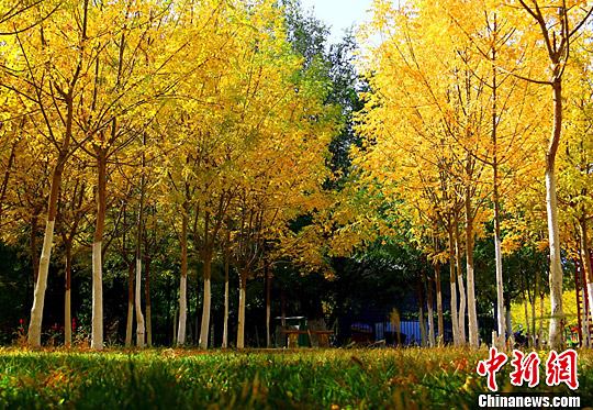 10月15日,進(jìn)入秋季以來,在新疆托克遜縣的公園里,園內(nèi)的樹林已經(jīng)褪去綠色,披上了黃色外衣,在陽光的照射下尤為光彩奪目,秋景迷人如畫。每年秋天,隨意走在托克遜的大街小巷、鄉(xiāng)村小道,隨處可欣賞到托克遜秋天的美麗景色。