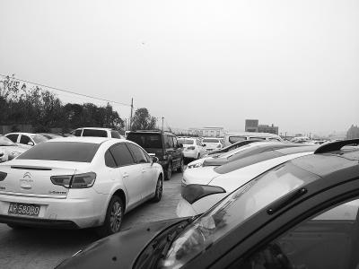 昨天早上,記者來到地鐵6號(hào)線潞城站出口。才8點(diǎn)不到,路北側(cè)兩個(gè)地鐵出口之間的空地上,就已密密匝匝停滿了私家車。記者鉆進(jìn)去轉(zhuǎn)了一圈,這片空地有大約兩個(gè)足球場(chǎng)大,北側(cè)靠著一片鐵皮圍擋,南臨馬路,但既沒有劃定停車位,也沒有收費(fèi)亭和管理人員,其實(shí)就是片荒地,卻擠進(jìn)了幾百輛車。西側(cè)的地面泥濘不平,大大小小泥坑邊,車停放得歪七扭八。
