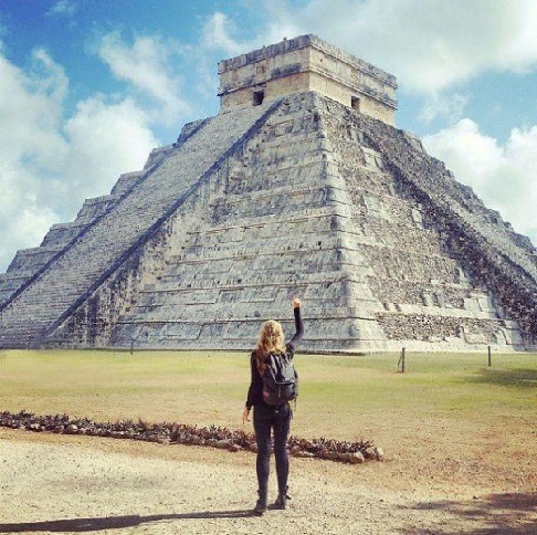 這是她旅行第一天在墨西哥瑪雅金字塔的照片