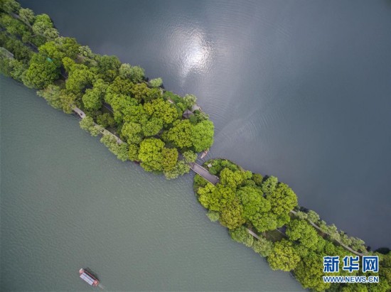 這是4月11日航拍的西湖景區(qū)蘇堤。 新華社記者 黃宗治 攝 圖片來(lái)源:新華網(wǎng)
