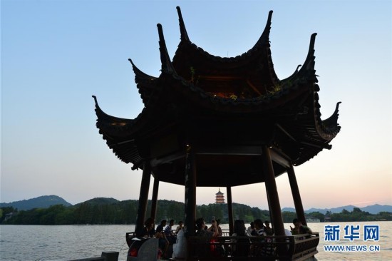 “三面云山一面城”,西湖的美麗自古就為眾多的作家和藝術(shù)家所稱頌!拔骱啊北徽J(rèn)為是“天人合一”最理想最經(jīng)典的景觀體現(xiàn)。圖為8月27日,游客在西湖上乘船游覽西湖風(fēng)光。 新華社記者 鞠煥宗 攝 圖片來(lái)源:新華網(wǎng)