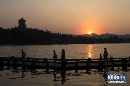 8月29日,游客在西湖邊欣賞“雷峰夕照”景觀。 新華社記者 鞠煥宗 攝 圖片來(lái)源:新華網(wǎng)