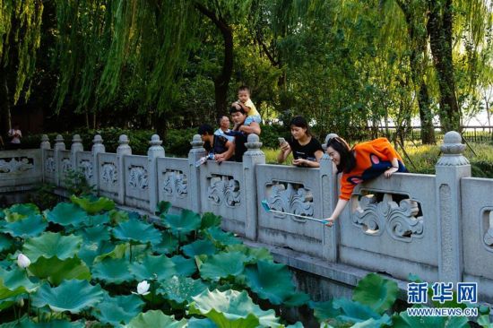 8月29日,游人在西湖一處荷塘拍攝荷花。 新華社記者 張鋮 攝 圖片來(lái)源:新華網(wǎng)