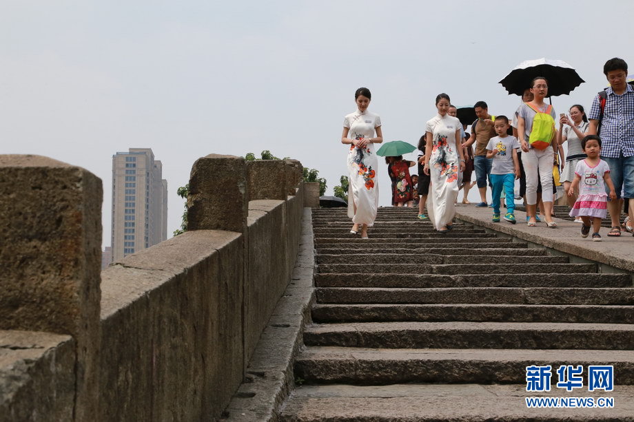 拱宸橋面上徐徐走來的姑娘是本次G20杭州峰會的志愿者。栩栩如生的杭州刺繡,搭配姑娘優(yōu)雅大方的儀態(tài),加之中英文雙語的精彩講解,讓中外游客印象深刻。新華網(wǎng) 翁 璟 攝
