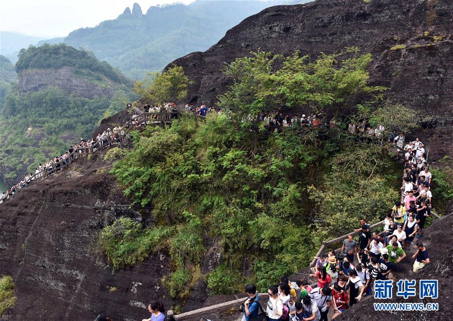 9月3日,游客在武夷山天游峰游覽。秋季天氣漸涼,福建省武夷山風(fēng)景區(qū)山清水秀,吸引眾多國內(nèi)外游客到此旅游觀光。 新華社記者陳海寧 攝