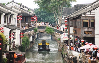 國慶假日期間,江蘇蘇州山塘古街游人如潮。