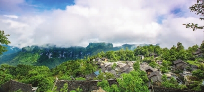 懸崖上的苗寨——金龍村。(本版圖片均由當(dāng)?shù)芈糜尉痔峁?/p>