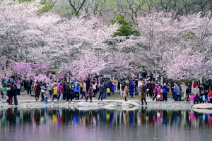 在前兩天春雨的滋潤(rùn)下,玉淵潭的早櫻全部怒放,周末迎來春光明媚的好天氣,玉淵潭櫻花迎來首個(gè)賞櫻高峰日。兩天接待游客12萬人。園內(nèi)早櫻系列的上千株櫻花從目前至未來一周將進(jìn)入最佳觀賞期;ㄗ司晷愕暮贾菰鐧、姿態(tài)婀娜的垂櫻、輕盈秀美的江戶彼岸、純凈雅致的吉野都已陸續(xù)盛開,繁花似錦,蔚為壯觀。由于早櫻品種有先花后葉的特點(diǎn),所以成片早櫻盛開時(shí)會(huì)呈現(xiàn)堆云疊雪的景致。再加上這幾日天冷,花謝得慢、待得住。因此,今年堪稱櫻花“大年”。