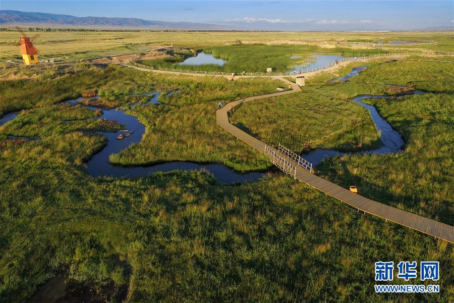 7月23日拍攝的新疆巴里坤哈薩克自治縣石人子鄉(xiāng)高家湖濕地公園。