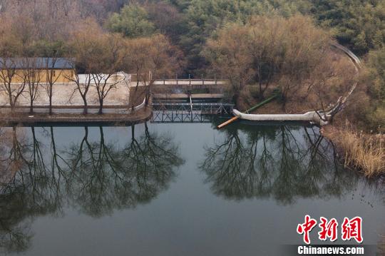 航拍江蘇“九寨溝”盱眙鐵山寺冬日迷人風(fēng)采,公園地形西高東低、山體絕對高程在200米以下。泱波 攝 這里透露出靜謐感。泱波 攝 多條山溪匯集成湖。