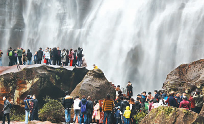 2018年春節(jié)黃金周期間,世界自然遺產(chǎn)地貴州省赤水丹霞旅游區(qū)內(nèi),游人如織。