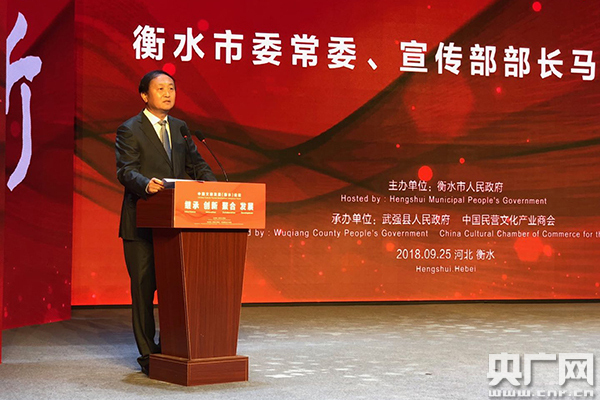 央廣網(wǎng)北京9月26日消息(記者胡瑩瑩)近年來(lái),河北省衡水市將發(fā)展文旅產(chǎn)業(yè)作為實(shí)施鄉(xiāng)村振興戰(zhàn)略、推進(jìn)產(chǎn)業(yè)轉(zhuǎn)型升級(jí)的重要載體,積極構(gòu)建全域旅游空間格局。2018年9月25日,由衡水市人民政府主辦,武強(qiáng)縣人民政府、中國(guó)民營(yíng)文化產(chǎn)業(yè)商會(huì)承辦的中國(guó)文旅發(fā)展(衡水)論壇成功舉辦。本次活動(dòng)的主題是“繼承·創(chuàng)新·聚合·發(fā)展”,聚焦文化旅游產(chǎn)業(yè)及文化藝術(shù)的創(chuàng)新發(fā)展。