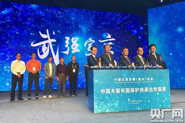 此外,本次活動(dòng)特別設(shè)置“武強(qiáng)宣言”環(huán)節(jié)。武強(qiáng)年畫(huà)博物館館長(zhǎng)王玉鵬作為代表宣讀《中國(guó)木版年畫(huà)保護(hù)傳承合作宣言》。來(lái)自天津楊柳青、江蘇蘇州桃花塢、山東濰坊、四川綿竹、河南朱仙鎮(zhèn)、河北武強(qiáng)等地的年畫(huà)代表及部分年畫(huà)專家,共同完成宣言啟動(dòng)儀式,立志將中國(guó)木版年畫(huà)更好地保護(hù)傳承下去,讓中國(guó)年畫(huà)具有更大的世界影響力。在隨后的“藝術(shù)文化創(chuàng)新論壇”環(huán)節(jié),幾位嘉賓圍繞中國(guó)藝術(shù)文化發(fā)展現(xiàn)狀、科技對(duì)文化藝術(shù)發(fā)展帶來(lái)的影響、如何多領(lǐng)域結(jié)合進(jìn)行創(chuàng)新發(fā)展等議題,進(jìn)行交流分享。