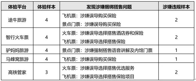 體驗調(diào)查發(fā)現(xiàn)涉嫌捆綁搭售問題情況