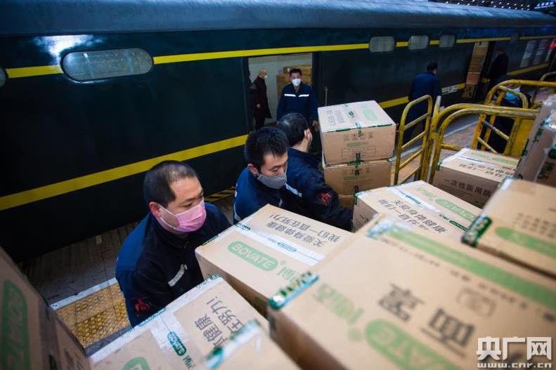 央廣網(wǎng)北京2月15日消息 記者從北京西站了解到,2月14日,2萬個(gè)防護(hù)面罩、1萬2千套防護(hù)服和2臺(tái)醫(yī)用空氣壓縮機(jī)共計(jì)1002箱,分別搭乘17:54開出的Z201次和21:09開出的Z285次列車由北京西站運(yùn)往武昌地區(qū)。