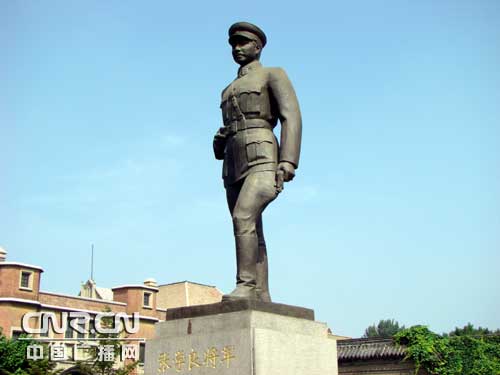 來大帥府參觀,首先會(huì)到帥府前的廣場(chǎng),廣場(chǎng)正中央矗立著一座張學(xué)良將軍的雕像。這座雕像于2005年“西安事變”69周年紀(jì)念日落成。雕塑的設(shè)計(jì)者為魯迅美術(shù)學(xué)院雕塑系教授張秉田先生。