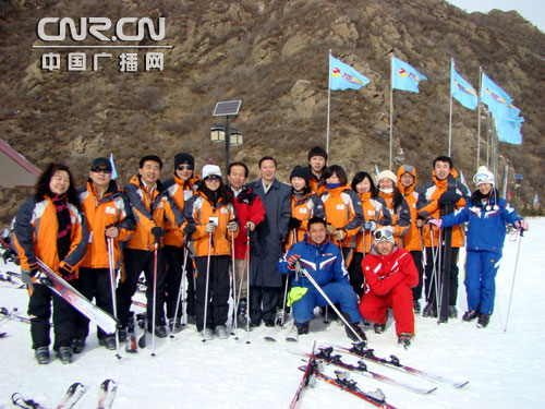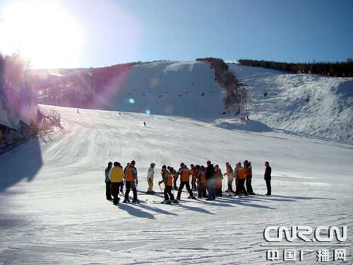 在營業(yè)樓的北面是初級者的臥龍道。它是中級雪道玉龍道的一部分。媒體采風(fēng)團的記者同仁們大多為首次參與滑雪,所以這里也是記者一行在此撒歡的地方。陪同前來雪場的張家口旅游局胡建忠副局長再三地叮囑大家:“為了大家的安全,千萬千萬不要到中高級雪道去一試身手,否則出了人身安全的問題那可真就麻煩了……”