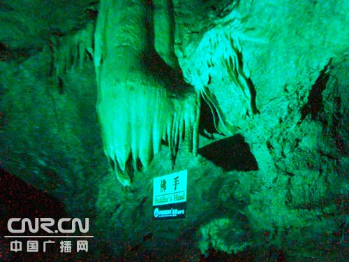 游船在曲折蜿蜒的河道中行駛。洞內的五顏六色的觀景燈幽暗,雖然能看清沿途千姿百態(tài)的景觀,但由于游船在洞中行,不可能用三角架對拍攝景觀長時間曝光,所以一般的照相機很難拍出各景觀的那種巧奪天工的實際效果。
