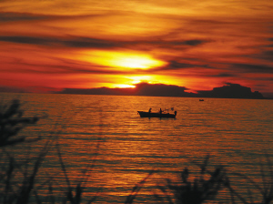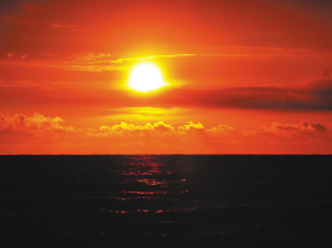 龍沐灣位于正西方,因此太陽落下時(shí),速度很快,幾乎是以最完美的圓盤形墜入大海。 王志勇 攝