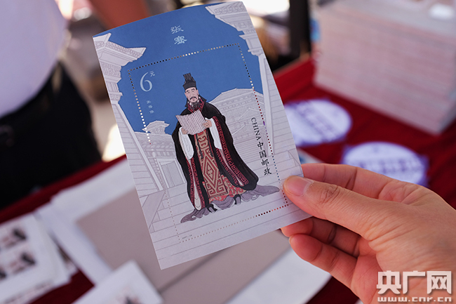 此次發(fā)行的《張騫》特種郵票小型張1枚(央廣網(wǎng)記者 趙龍/攝)
