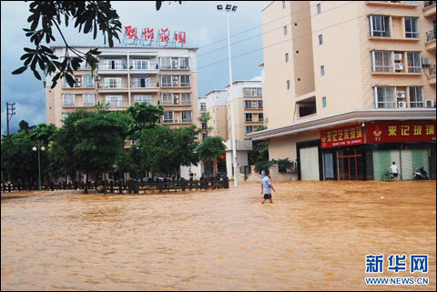 從7號(hào)晚開始的強(qiáng)降雨突襲廣西東北部的桂林、賀州、梧州等地,78個(gè)鄉(xiāng)鎮(zhèn)降雨量超過100毫米。其中廣西興安縣局部降雨量超過250毫米,部分地區(qū)大雨昨晚仍沒有停止。使得湘江廣西段、漓江桂林段等江河出現(xiàn)今年入汛以來最高水位,并一度超警戒水位,象鼻山景區(qū)被淹,漓江沿岸低洼區(qū)域被淹居民不斷需要轉(zhuǎn)移。桂林市消防支隊(duì)王培:“漲起來的水泡到了低洼的社區(qū),我們消防兵不停地用橡皮艇把人接出來,我們現(xiàn)在還在江邊警戒!