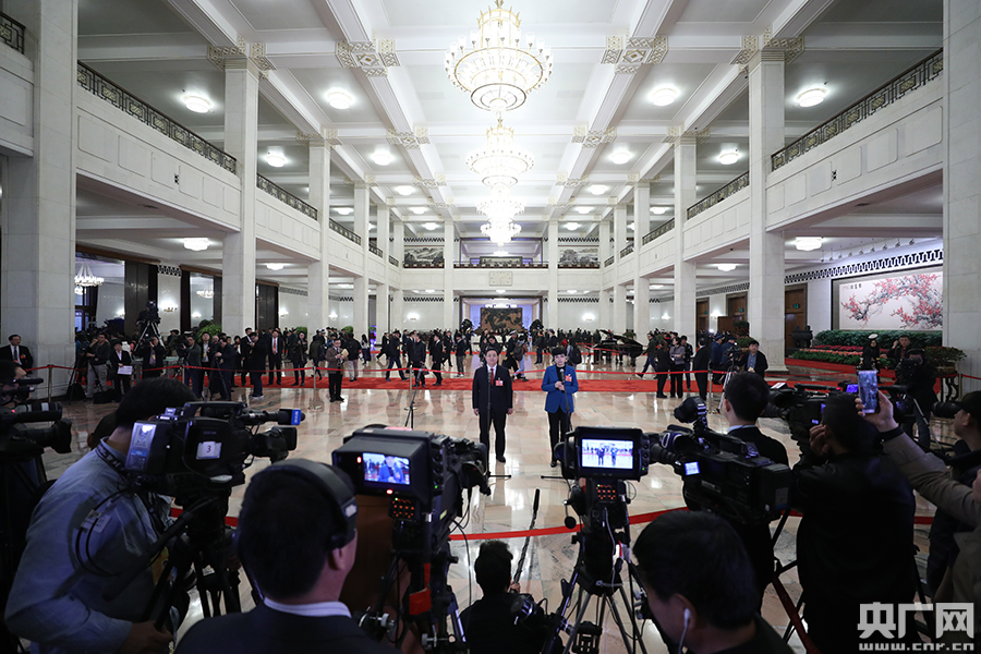 3月11日,十三屆全國(guó)人大一次會(huì)議在北京人民大會(huì)堂舉行第三次全體會(huì)議。這是全國(guó)人大代表余紅藝(右)、郭大進(jìn)在“代表通道”接受采訪。央廣網(wǎng)記者 韓靖 攝