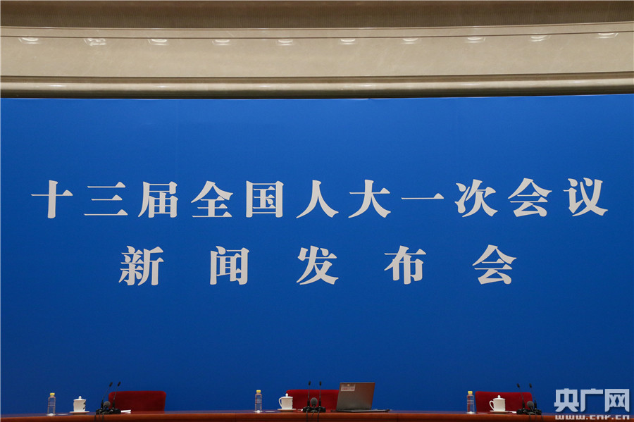 十三屆全國(guó)人大一次會(huì)議將于3月4日上午在人民大會(huì)堂新聞發(fā)布廳舉行新聞發(fā)布會(huì),由大會(huì)發(fā)言人就大會(huì)議程和人大工作相關(guān)的問題回答中外記者的提問。圖為新聞發(fā)布會(huì)現(xiàn)場(chǎng)。央廣網(wǎng)記者曹宇 攝