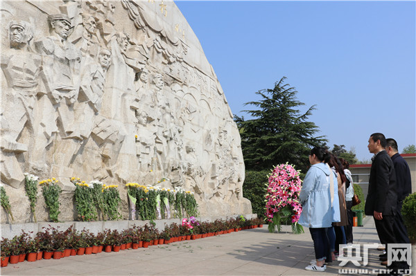 在“江淮英烈永垂不朽”的紀念碑前,大家整齊肅立,懷著沉重的心情追思革命先烈。他們在了解革命故事的同時,向革命先驅(qū)和烈士們敬獻鮮花,表達對烈士的緬懷之情。
