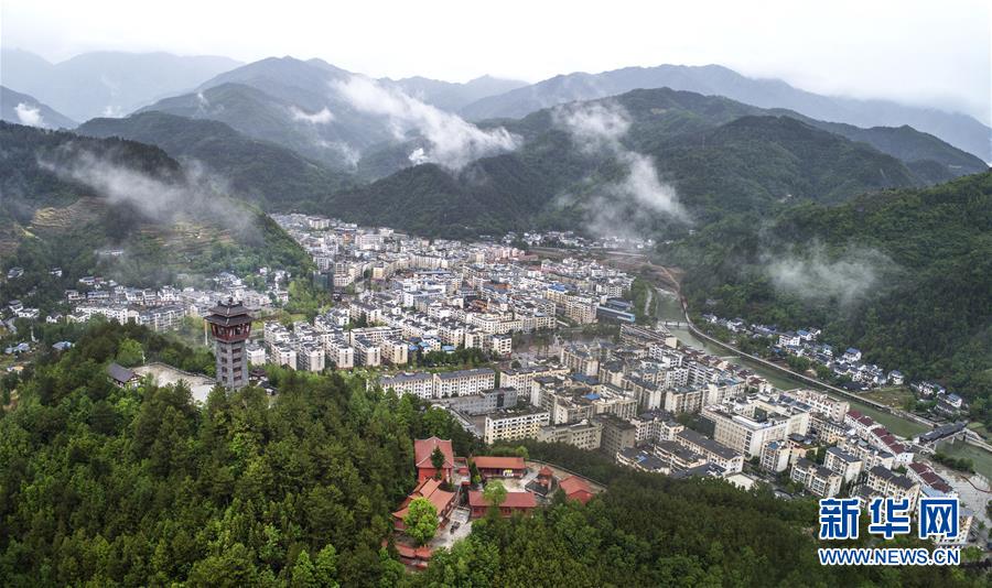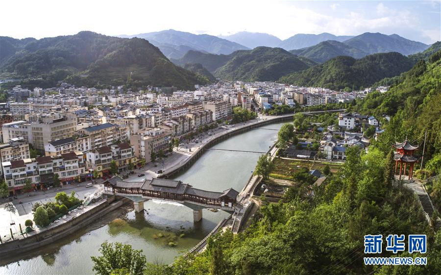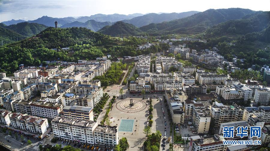 俯瞰新青川縣城(4月25日無人機拍攝)。新華社記者陶明攝