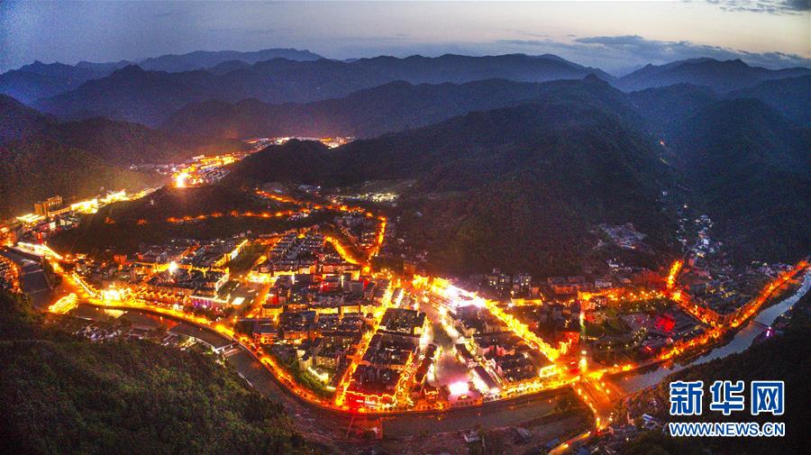 夜幕下的新青川縣城,燈火輝煌(4月25日無人機拍攝)。新華社記者陶明攝