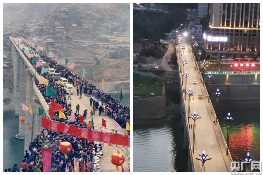 1987年紫陽漢江大橋通車與2019年紫陽漢江大橋現(xiàn)狀對(duì)比(分別為紫陽縣委宣傳部供圖、劉濤攝)