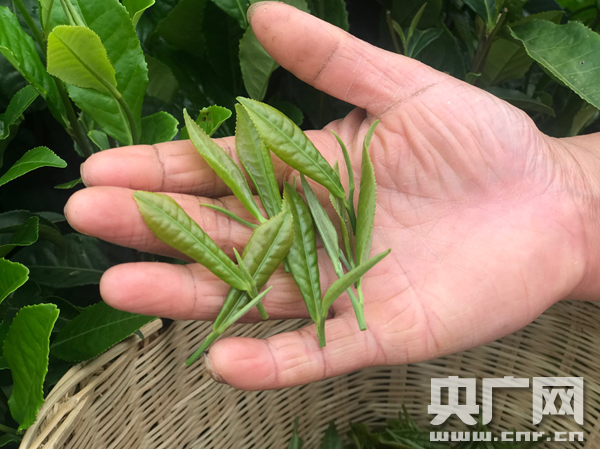 茶農(nóng)向記者展示的“一芽一葉” 朱琛 攝