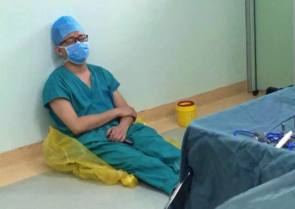 在醫(yī)院普外科工作時,于鐵夫大部分精力都投入到醫(yī)療救治工作中。無論白天黑夜,只要有急診手術(shù),他都是隨叫隨到。于鐵夫曾因工作太累,睡倒在手術(shù)室的照片迅速“躥紅”朋友圈,獲得無數(shù)人點贊。