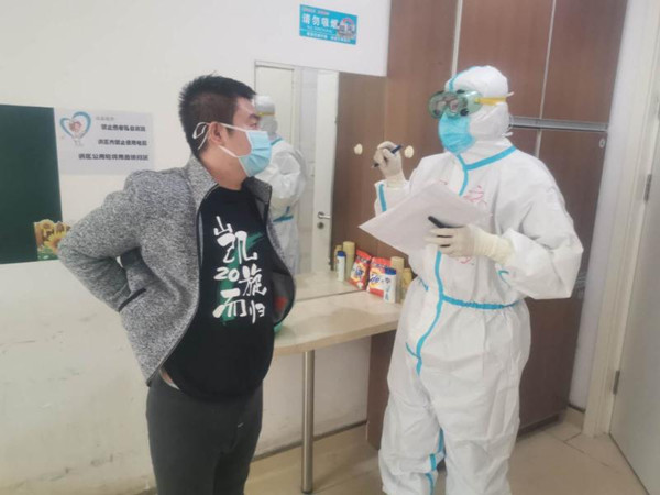 作為醫(yī)院消化病研究中心普外科的主治醫(yī)師,于鐵夫接診病人、詢問病史、協(xié)助采樣、查房……連續(xù)20多天奮戰(zhàn)在防控一線。于鐵夫同時還擔任醫(yī)院北院區(qū)隔離病區(qū)1號樓負責人,每天都全身心投入到疫情防控的工作中,不僅要處理病區(qū)所有大小事物,更是每天多次查房,密切關(guān)注所有患者的病情動向,協(xié)調(diào)多項工作。工作中的他,以身作則,超強的工作負荷讓他在20多天里,最多時體重減了20多斤。