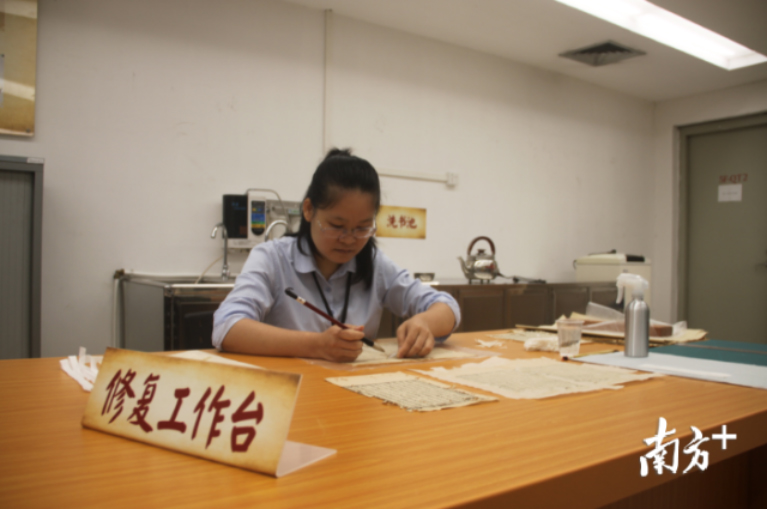 在廣東省圖書館的支持下,2018年順德古籍文獻(xiàn)修復(fù)室正式投入使用,張?jiān)绿m和喻雯虹是目前修復(fù)室內(nèi)兩位專職工作人員。