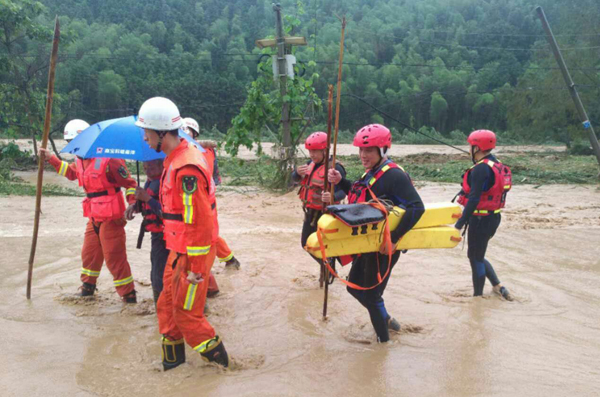 2019年6月23日,建甌市普降暴雨,河流水位迅猛上漲,東峰鎮(zhèn)坤口村一位婦女被困在河中央的小島無法脫身。上午9時許,大隊接到市防汛抗旱指揮部協(xié)助指令后,4位隊員第一時間趕往目的地。到達遇險河岸后,隊員立即與市人武部應急分隊一同投入救援行動中。此時,河水還在不斷上漲,大家心急如焚,隊員與河水賽跑搶時間,既爭分奪秒,又準確預判,確定好現(xiàn)場各搶險環(huán)節(jié)后,具有較強專業(yè)知識的副隊長姜衛(wèi)松帶領邱仁旺、歐偉東上島救人,隊長王東強岸上指揮協(xié)調(diào)。經(jīng)過40多分鐘驚心動魂的救援,被困婦女終于成功脫險。