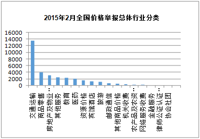 圖1 2015年2月全國(guó)價(jià)格舉報(bào)總體行業(yè)分類
