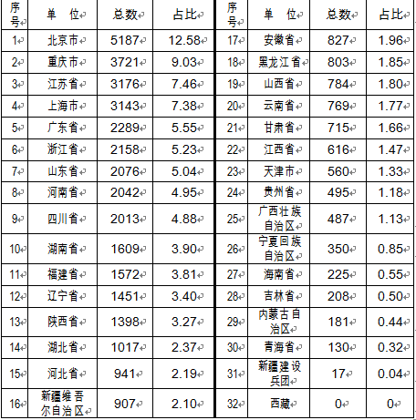 價(jià)格舉報(bào)件中,最多的五個(gè)省區(qū)市依次為:北京市5187件,占12.58%;重慶市3721件,占9.03%;江蘇省3176件,占7.46%;上海市3143件,占7.38%;廣東省2289件,占5.55%。最少的五個(gè)省區(qū)市依次為:西藏自治區(qū)0件;新疆兵團(tuán)17件;青海省130件;內(nèi)蒙古自治區(qū)181件;吉林省208件。