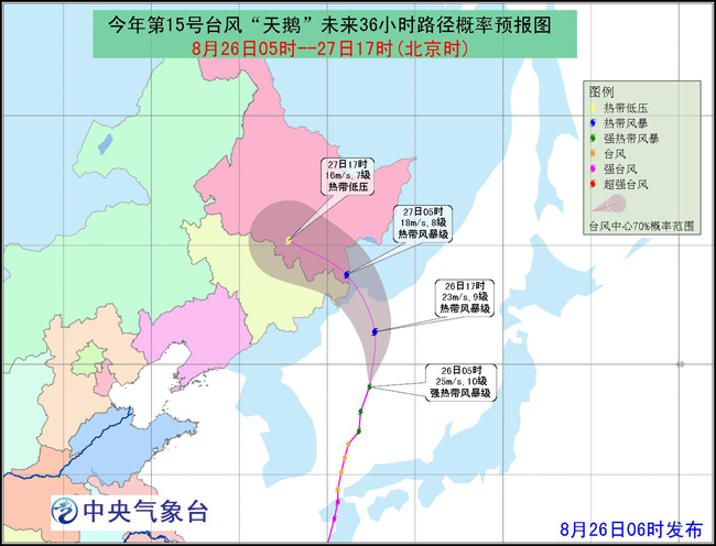 央廣網(wǎng)北京8月26日消息 中央氣象臺(tái)8月26日06時(shí)發(fā)布臺(tái)風(fēng)藍(lán)色預(yù)警: