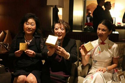 圖為美國僑胞展示習近平帶來的月餅!敖裉煳覀兒M獾挠巫釉谥星锛压(jié)之際拿到習近平主席送給我們的月餅,讓我們在海外的游子甜到了心里!泵绹A人文化藝術屆聯(lián)盟主席于靜江說。