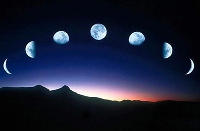 每逢農歷初一,月亮運行到地球和太陽之間,月亮被照亮的半球背對地球,此時看不到月亮,叫做“新月”,也叫“朔”;到了農歷十五、十六,月亮亮的一面朝向地球,此時可以看到圓月,稱為“滿月”,也叫“望”。